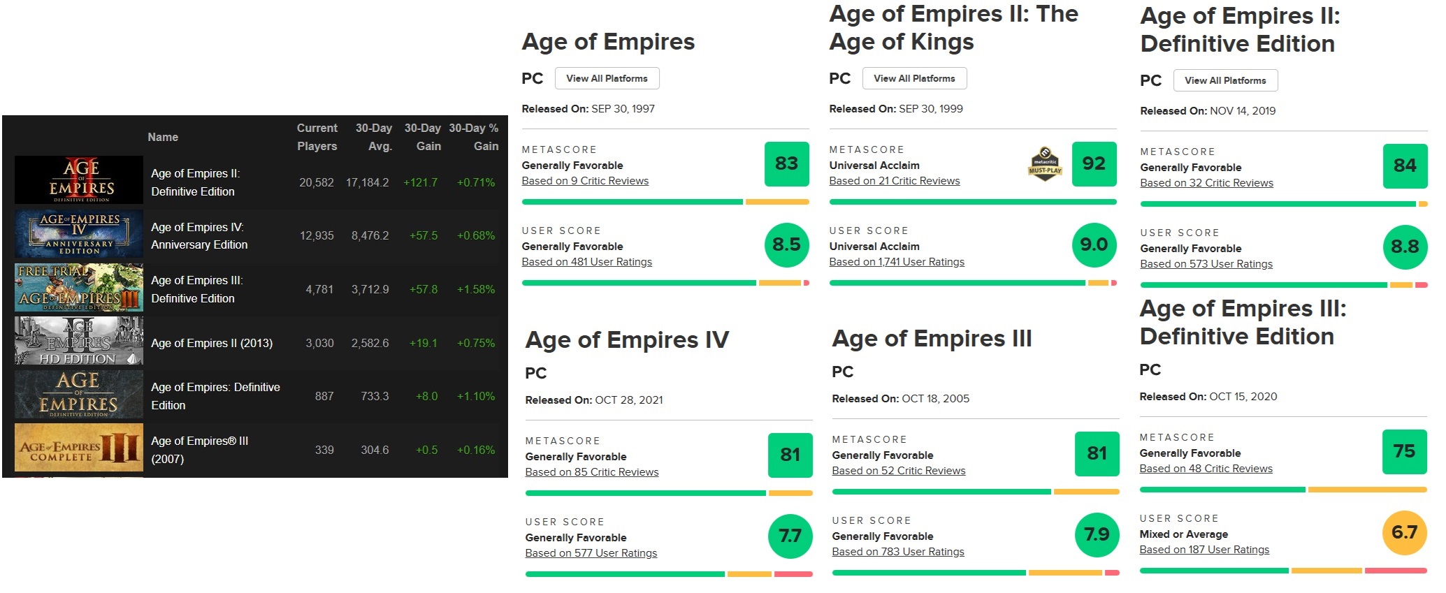 >>736422185>>736422101>>736421974>>736421776>>736421759>>736421710>>736421654>>736398710>>736390528Just did some research and survey says>AoE2 original best rated>AoE2: Defin most playedCommence arguing