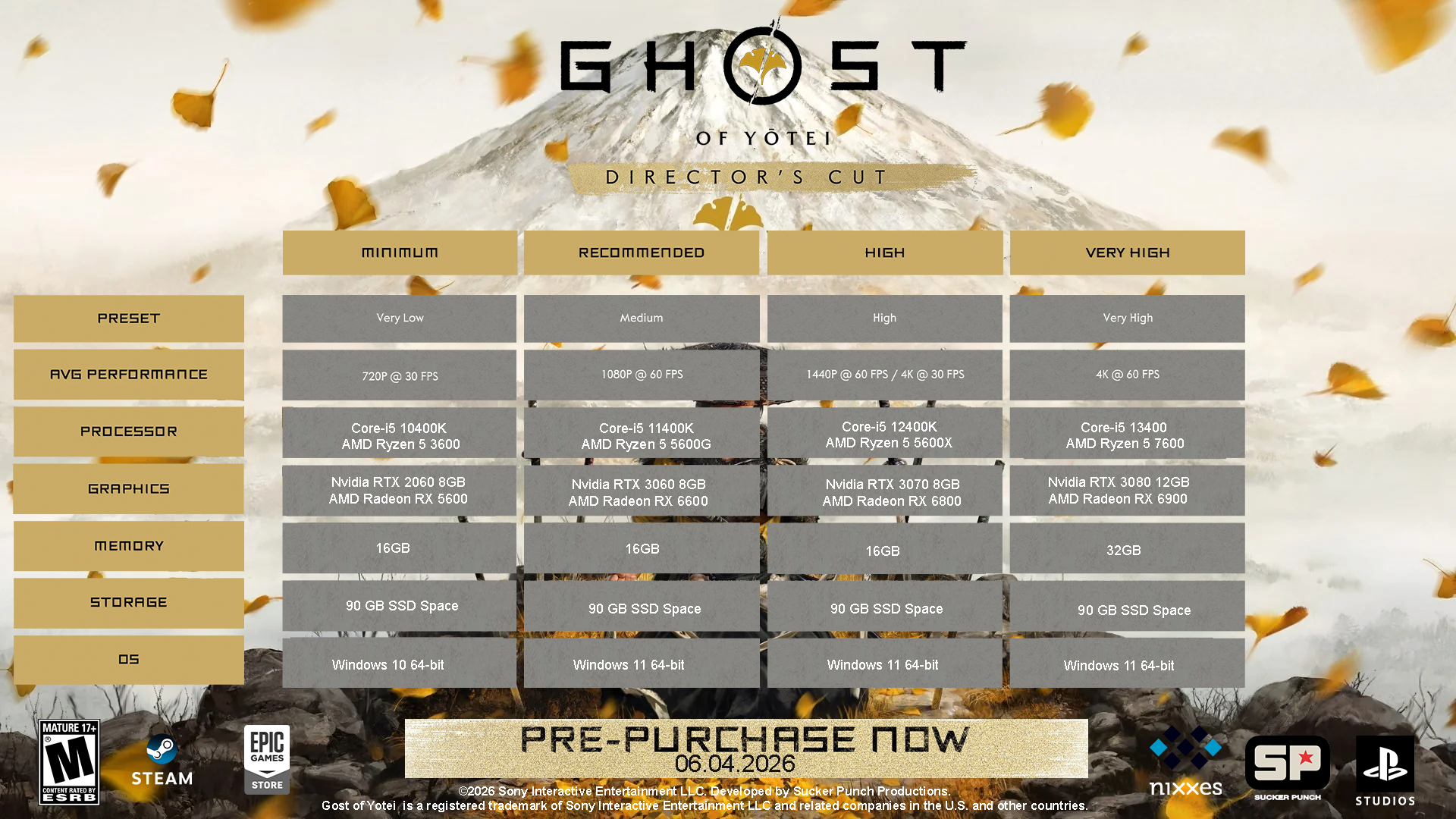 the PC specs for Ghost of Yotei leaked pic related