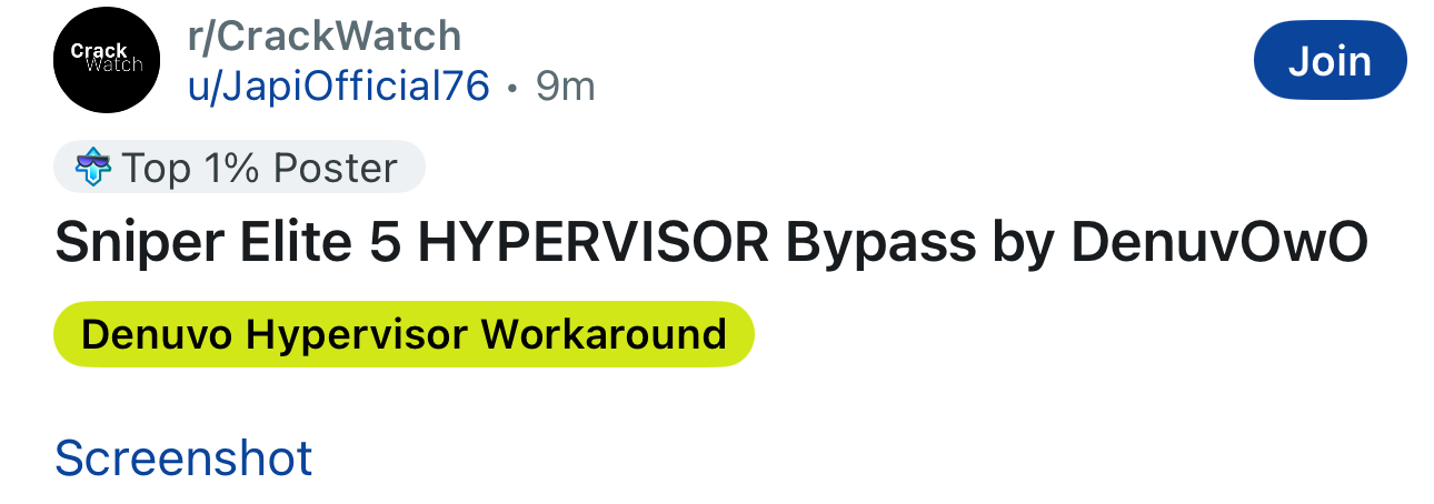 At this point it would be in Denuvo's best interest to stage a falseflag by distributing a malware version of hypervisor, to destroy trust in it. Just saying.I wonder whether they're in the red right now or not. How long can they last with no new purchases?