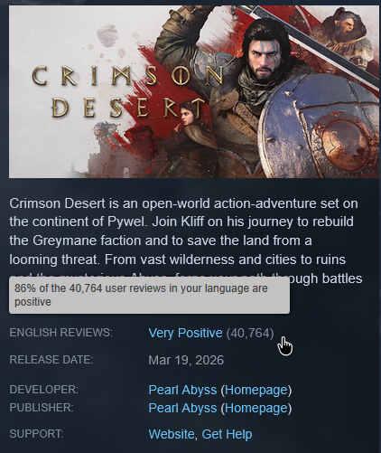 Crimson Desert might have been developed by gooks, but it doesn't directly show anything repugnant like mongrels, nogs, jeets and araboids. It's just a rather generic "western" setting from an asian perspective. And it's great fun. We both like Crimson Desert, let us rejoice in that.