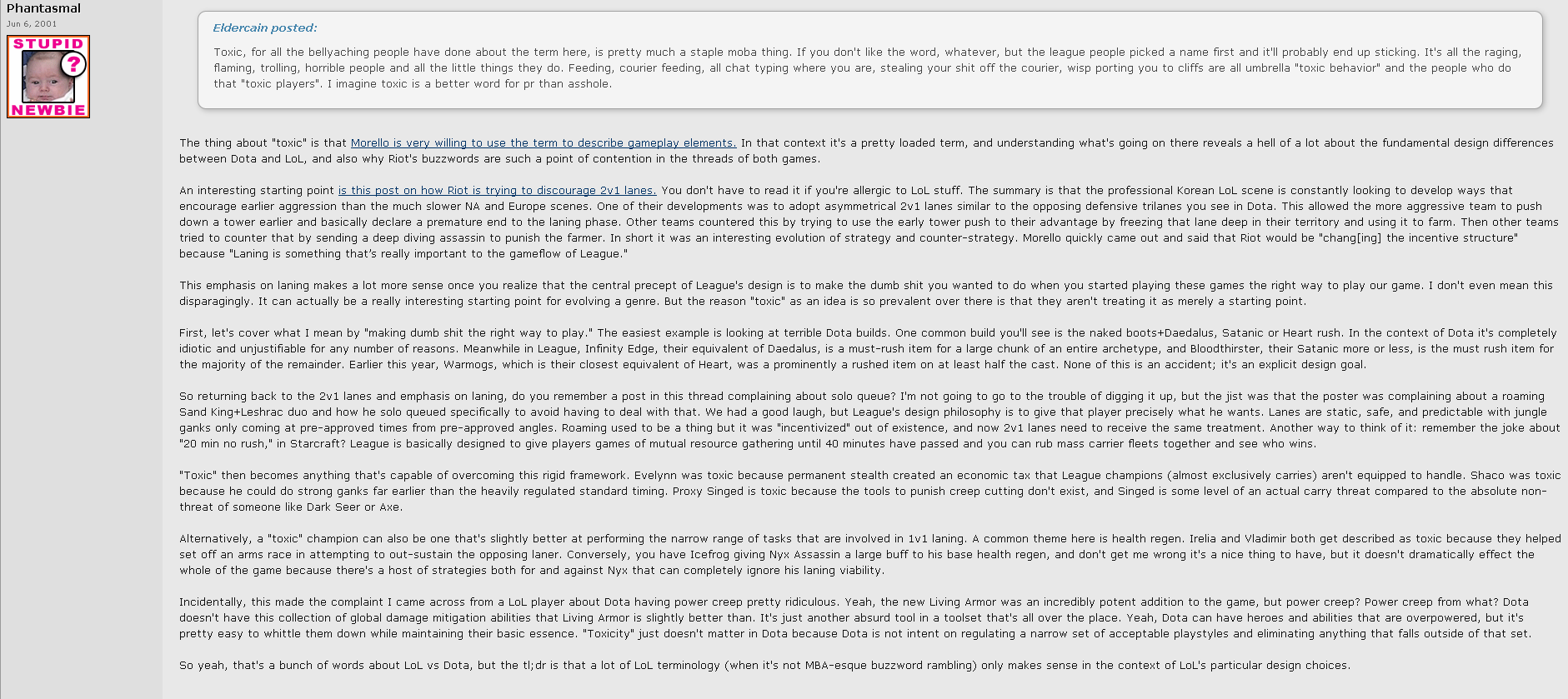 >>736419807Early LoL stole a lot of ideas from that dota forum, and there were a lot of cool people that worked there, but in 2012 there was an exodus where the people that didnt lick the boot were fired.