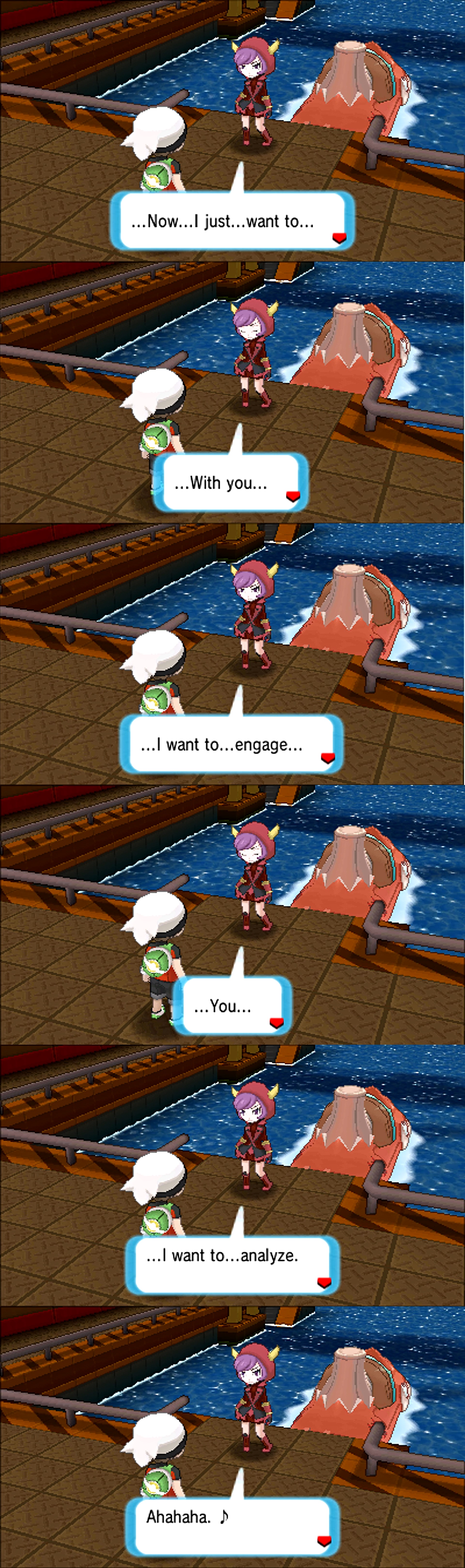 >>736432614These dialog boxes were edited to be out of order. She's just an autist who speaks in short bits