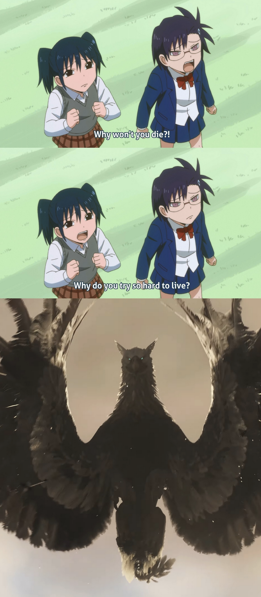 >>736442937>used the one hit kill arrow>survivesWas it something about not hitting her face? Forgot that shit.