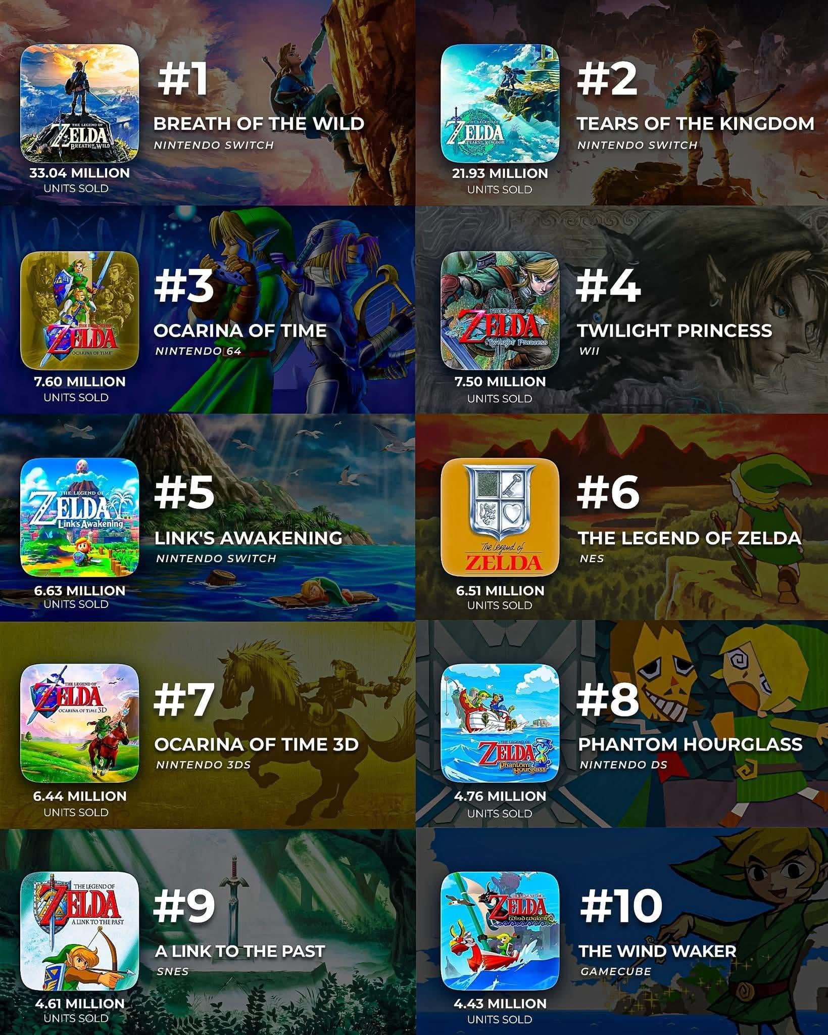 >>736453202The 3DS remake has it's own ranking on this list. (and it's soulless compared to the N64 version) I am not sure the digital eshop sales are included in this. The Gamecube one was part of Windwaker special edition so that clearly doesn't count.