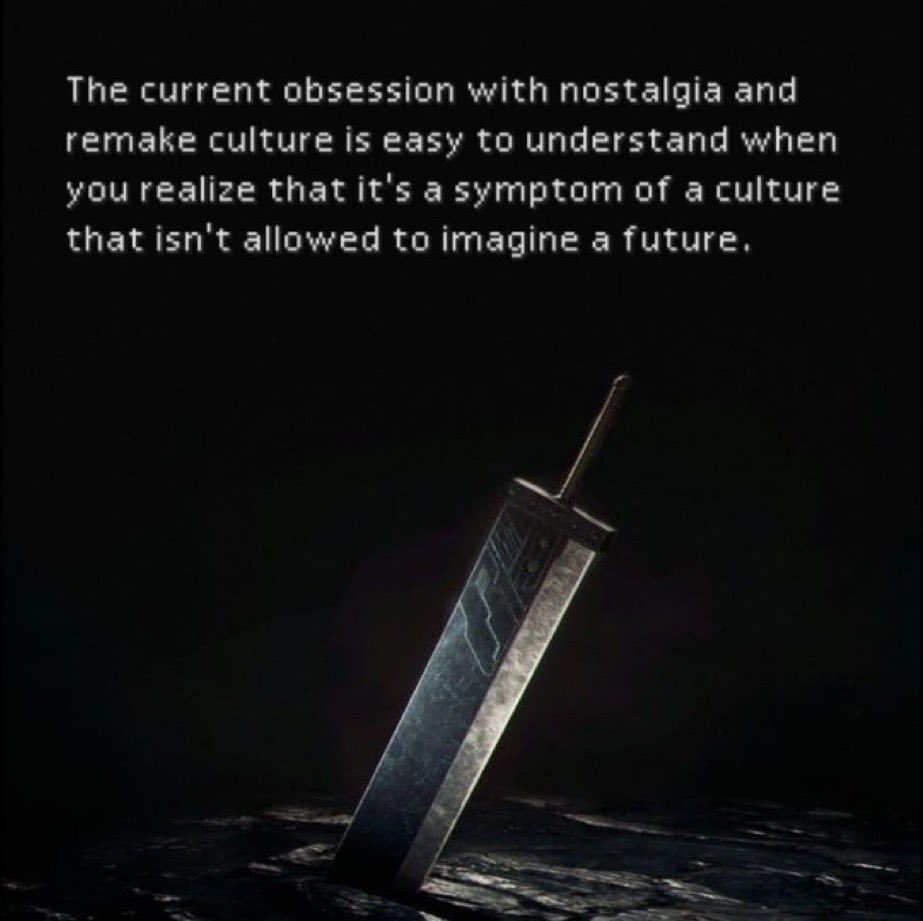 >>736471769Your image isn't about Final Fantasy. It's doomer "the world isn't what it used to be 20 years ago and I want to kill myself" bullshit. It represents a bad/non-functional interpretation of REALITY