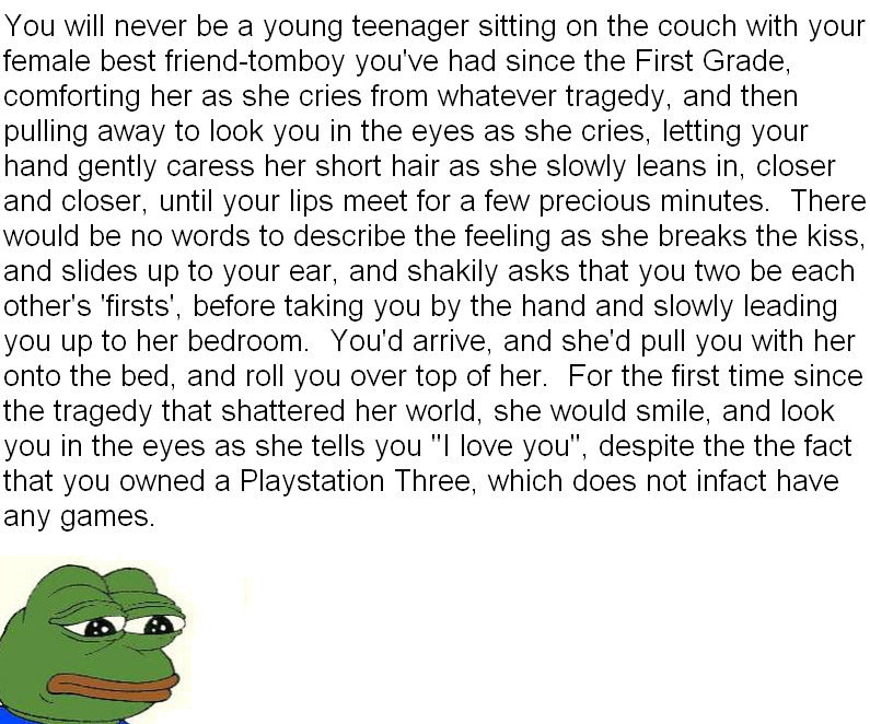 >load game up after 10 yearsOh yeah I forgot that bitch, I'm gonna go make AI hentai in her image for my next fap.