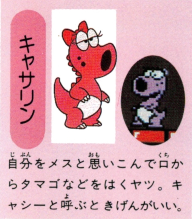 >>736495668>キャサリン>自分をメスと思いこんでロからタマゴなどをはくヤツ。キャシーと呼ぶときげんがいい>catherine>thinks if itself as a girl and spits out eggs.>likes being called cathy.basically. either "itself" or "himself" works where i put "itself". yatsu/ヤツ is gender neutral meaning "that person/that thing," but if it thinks it's a girl it's implied it isn't really.>they wouldn't put that in a kids' game!yoshi produces eggs.nintendo put a dildo quest in a kids' game.that put vivian in paper mario and it's ambiguous whether it's a girl or boy, a kids' game.they put the magypsies in mother 3 and put an innuendo joke scene where one rapes the main character, a kids' game.