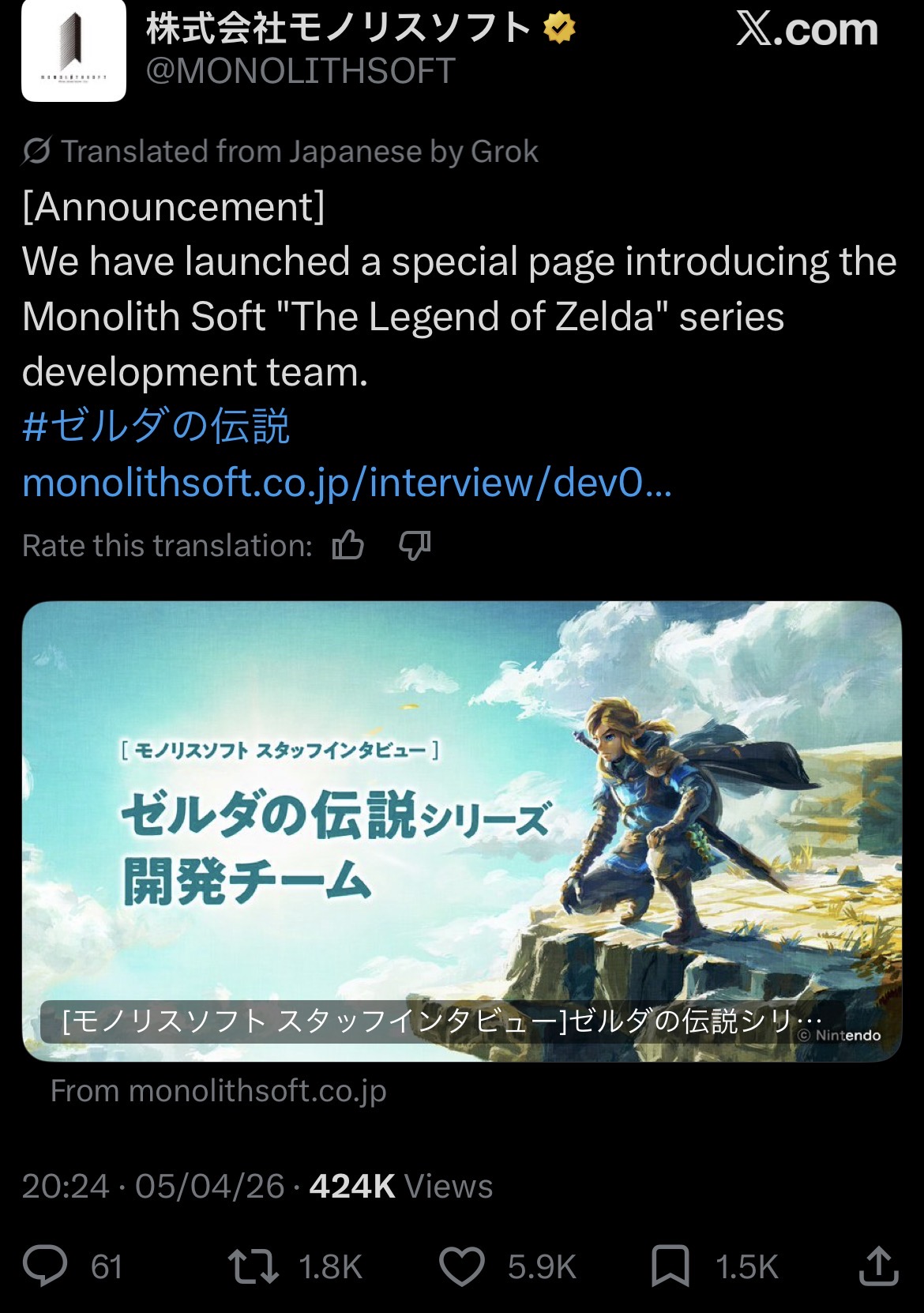 >>736487942Holy shit, the Zelda recruitment ad was FINALLY delisted. I knew it!https://www.monolithsoft.co.jp/recruit/https://arch.b4k.dev/v/thread/728887180/#728892532