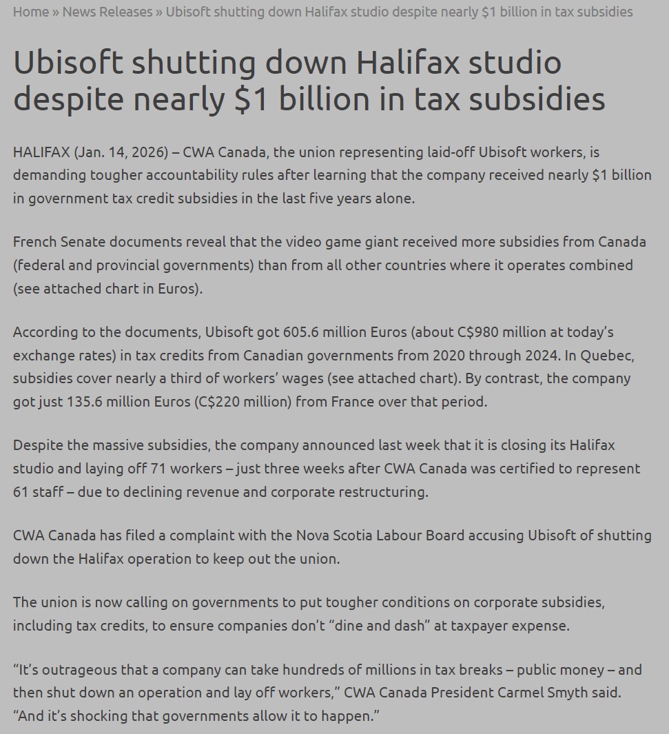 >>736497341>union gets certified>studio gets shut downYou'd think there'd be at least a little bit of focus on that alongside the stolen tax loonies.
