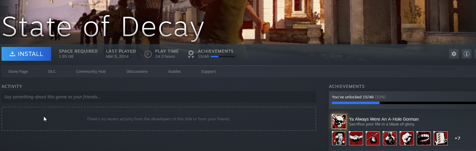 I tried playing state of decay and they wanted me to have some windows4games account or some shit so I uninstalled. sad