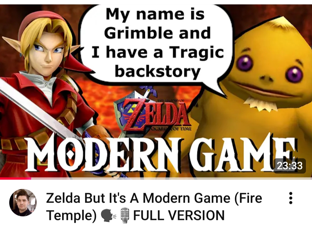 >3DS and Ship of Harkinian both already provide modern graphics update alternativesGo fucking crazy. Go fucking nuts. Expand out everything, include things that were cut in development, include things they wanted to implement but couldn't due to technological limitations, give it a full total ground-up remake with a modern engine, massively expand out character interactions and locations, put in shitloads of new content in old places, go fucking crazy.>But anon, why would you want that?The original will always exist and there are two graphical update options. I can play any one of these THREE versions if I want to enjoy OOT. The remake going balls to the walls crazy won't change those games, it'll simply be another game entirely. Maybe it'll be great, maybe it'll suck, but shit this is exactly the kind of game you may as well go nuts with. And if it does suck the THREE alternatives will always be there to play instead.