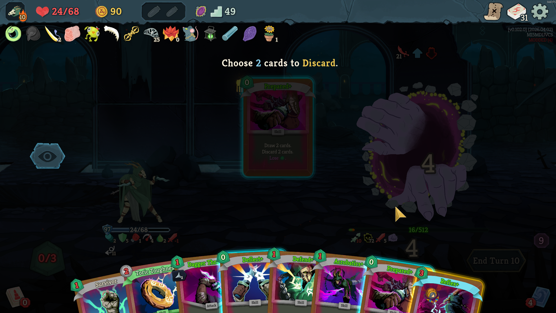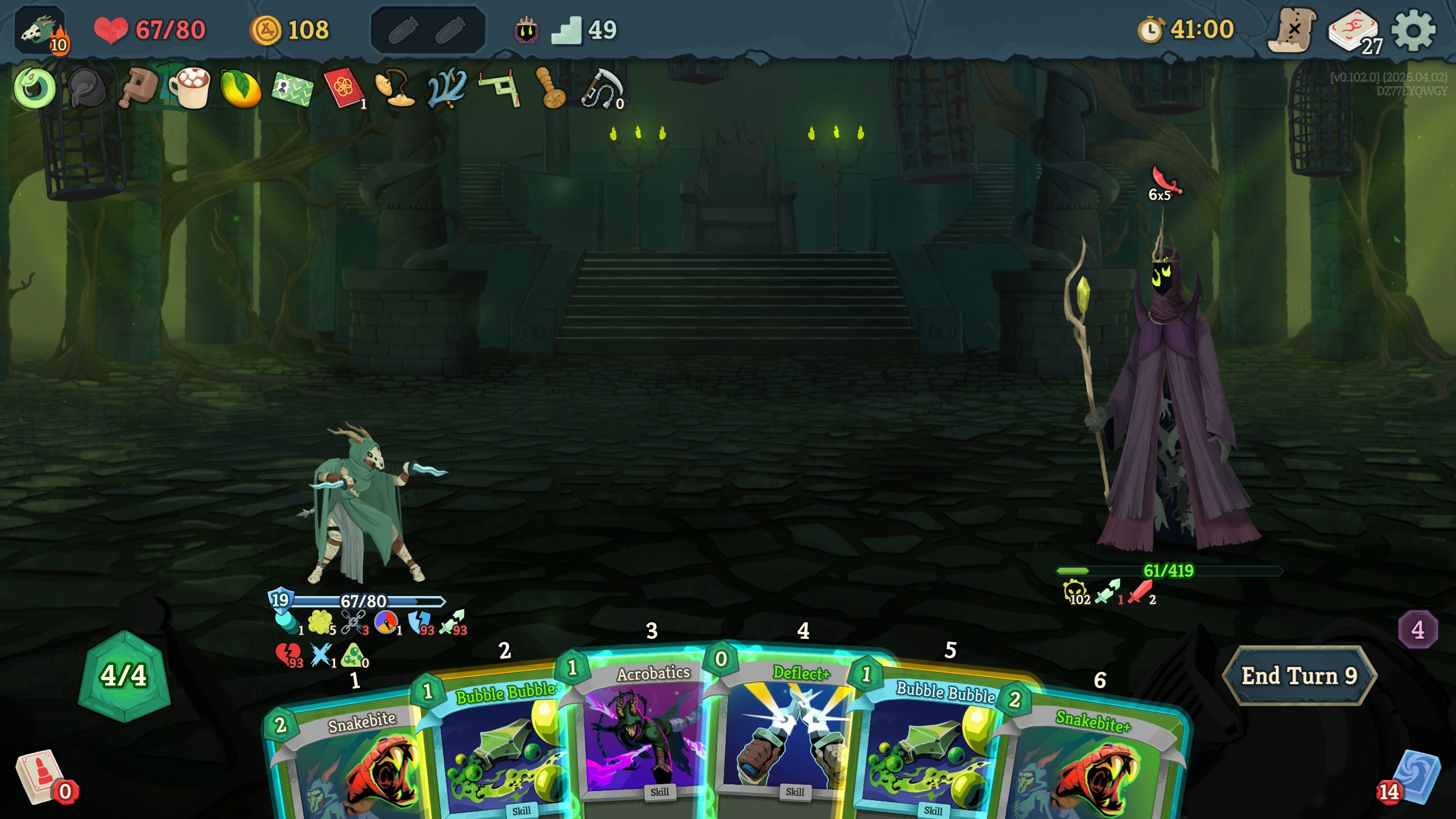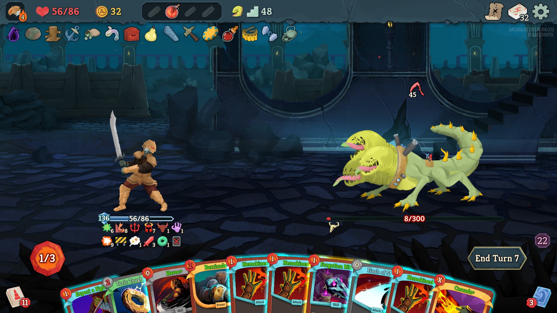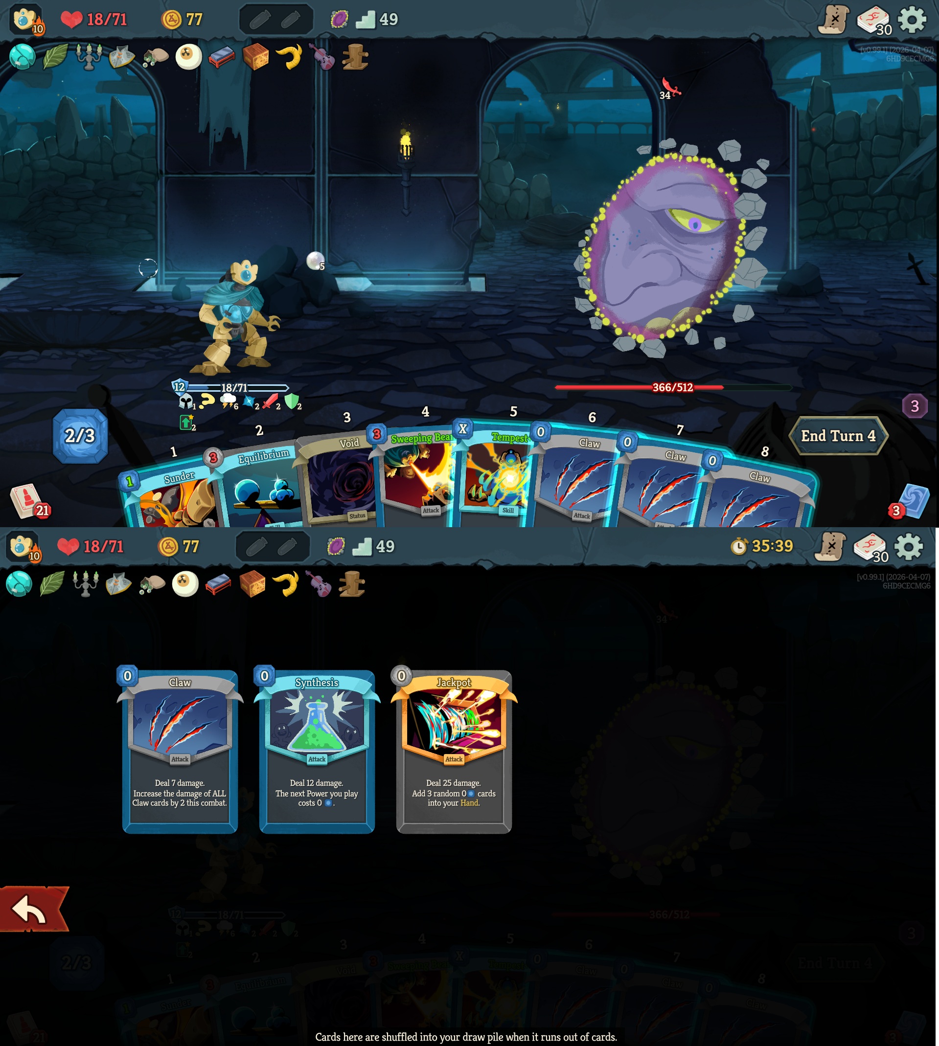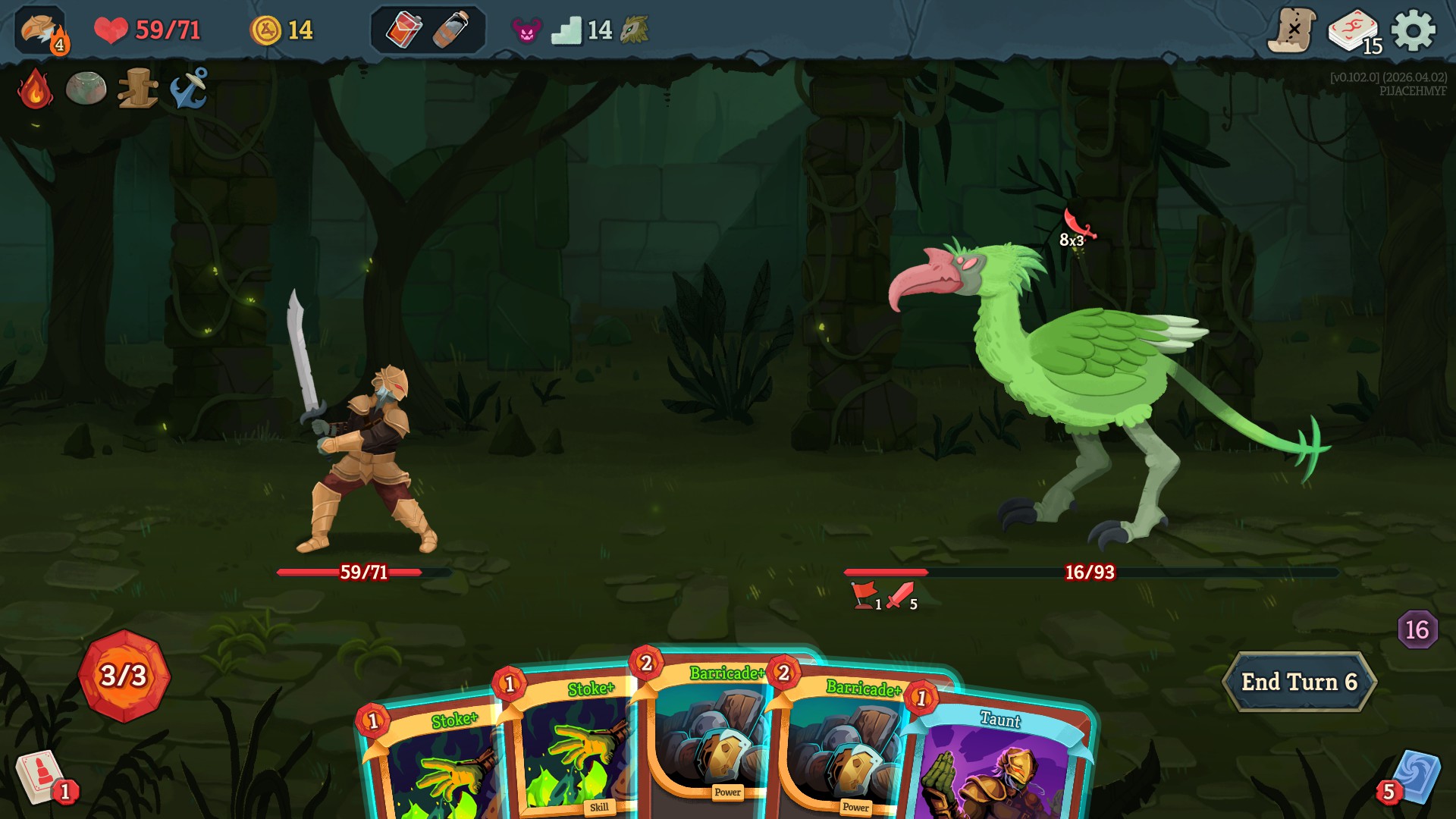 in the latest update he make all cards exhaust when you play them. prohibit you from drawing cards. and he takes 1 energy from you every time you play a card. all while hitting for 30 every turn