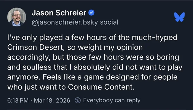 >>736516941Only 10~15hrs at most have good replay value, like most REs. Most people here won't ever touch Crimson Desert again.