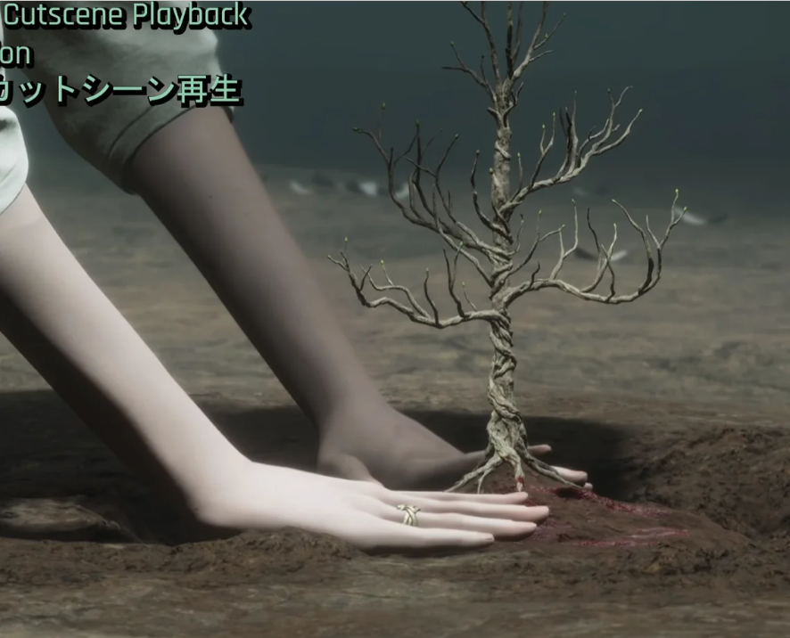 >you know that beautiful animation that we painstakingly made of shota Miquella planting the Haligtree and we cut for no reason? Bring it back, but make sure we get absolutely nothing like the cool tree growing, just an awkward stilted animation of Miquella looking at nothing. No, don't add anything else, just set it in an empty void, and make him talk about wanting to marry Radahn again. No dialogue about life flourishing, we don't want to confuse the players in case they forgot that Miquella cared about Radahn after his boss fight.