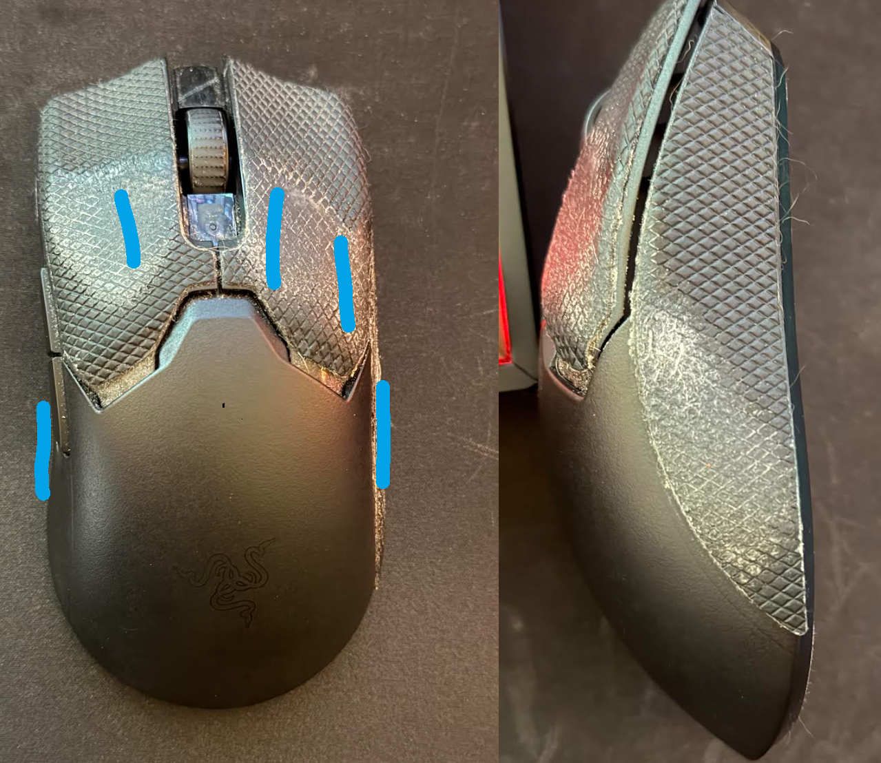 >>736534892Currently using a Viper V2 Pro but looking to maybe try something else soon. I have quite a unique mouse grip though so not much works for me. I think I have a relaxed claw grip/fingertip hybrid? Not really sure what to call it, I've attached a pic of my mouse with the grip tape wear marks so you can see and the approximate position of my fingers, note I use my middle and ring finger both on the right click. I have quite large hands as well as I'm 6'2 irl. I'm thinking an Endgame Gear XM2W might be good for my grip?
