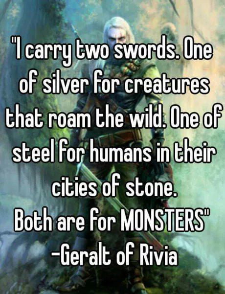 >>736549063You know this is true because if Geralt constantly said "women are monsters" people would obviously take it as misogyny, even if he was talking about especially evil women