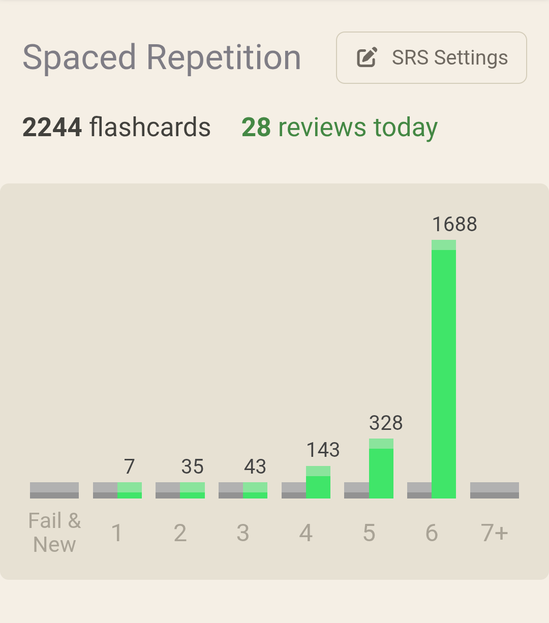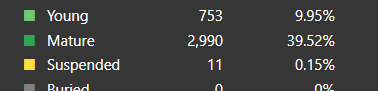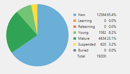 >>7366033603000 matured cards isn't even a lot after half a year. I'm also half a year into it and I have around 6000. A decent chunk of that being stuff from another language that I'm learning.