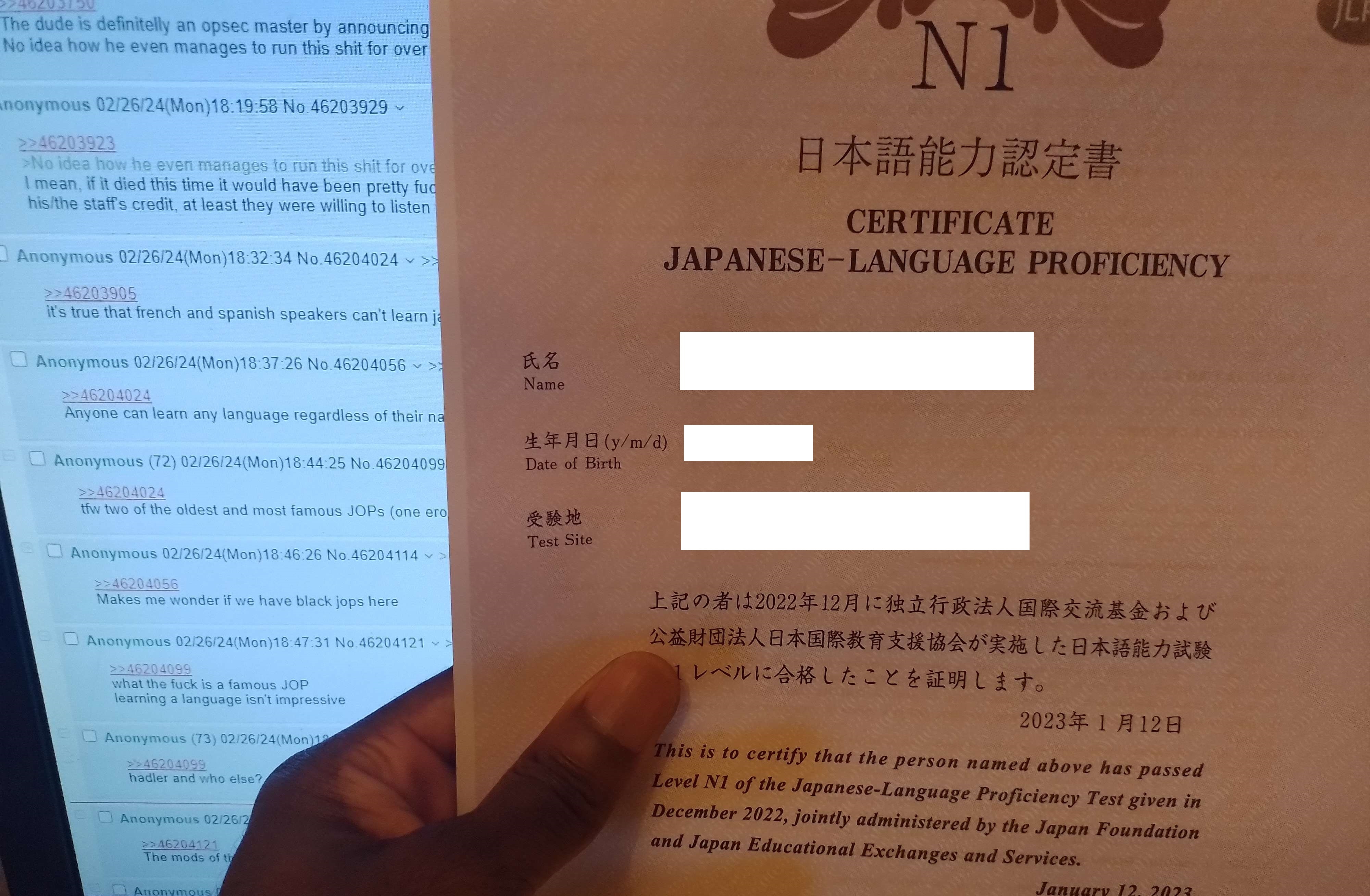 >>736603360he's lying, if it wasn't obvious. Anyone who says shit like >yeah, studied on and off for 2 years, got my N1 already, was pretty easyis more than likely just lying or heavily embellishing
