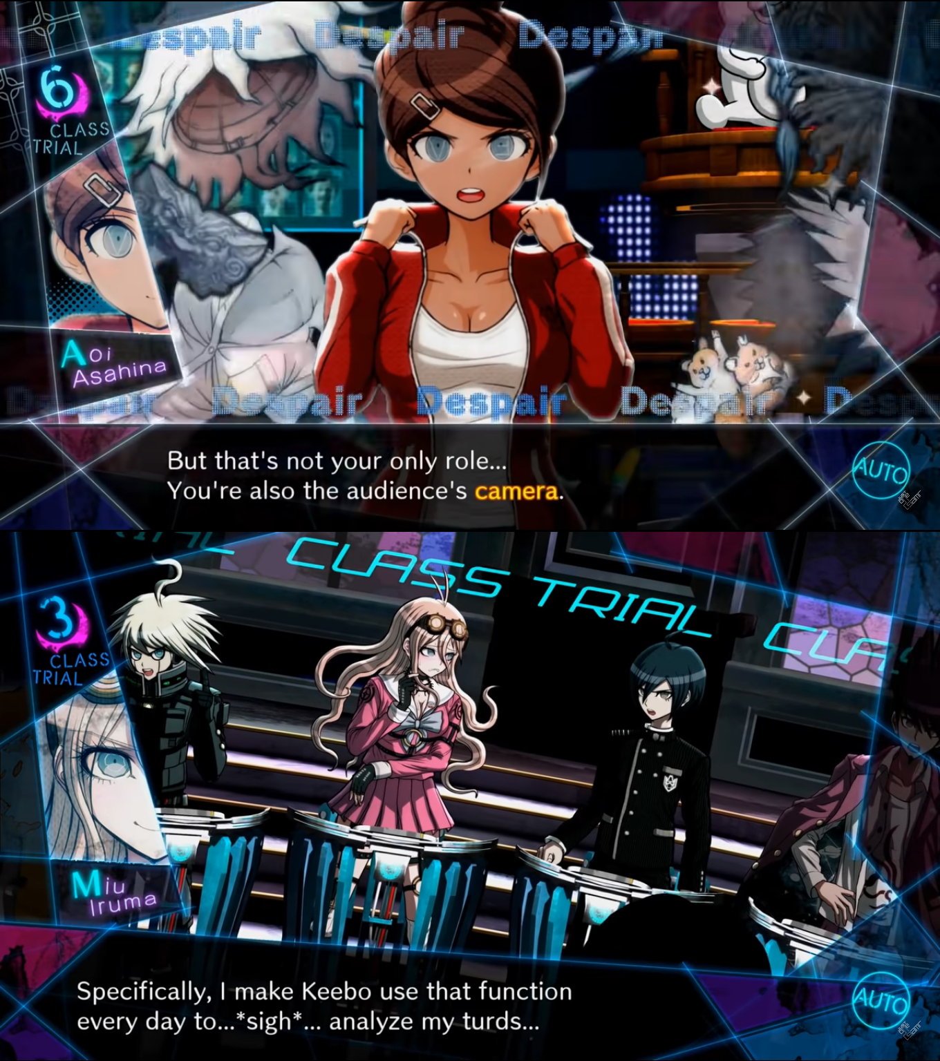 everyone at the class trial staring at the hickies and bite marks on both Miu and Shuichi as well as them holding hands the entire trial