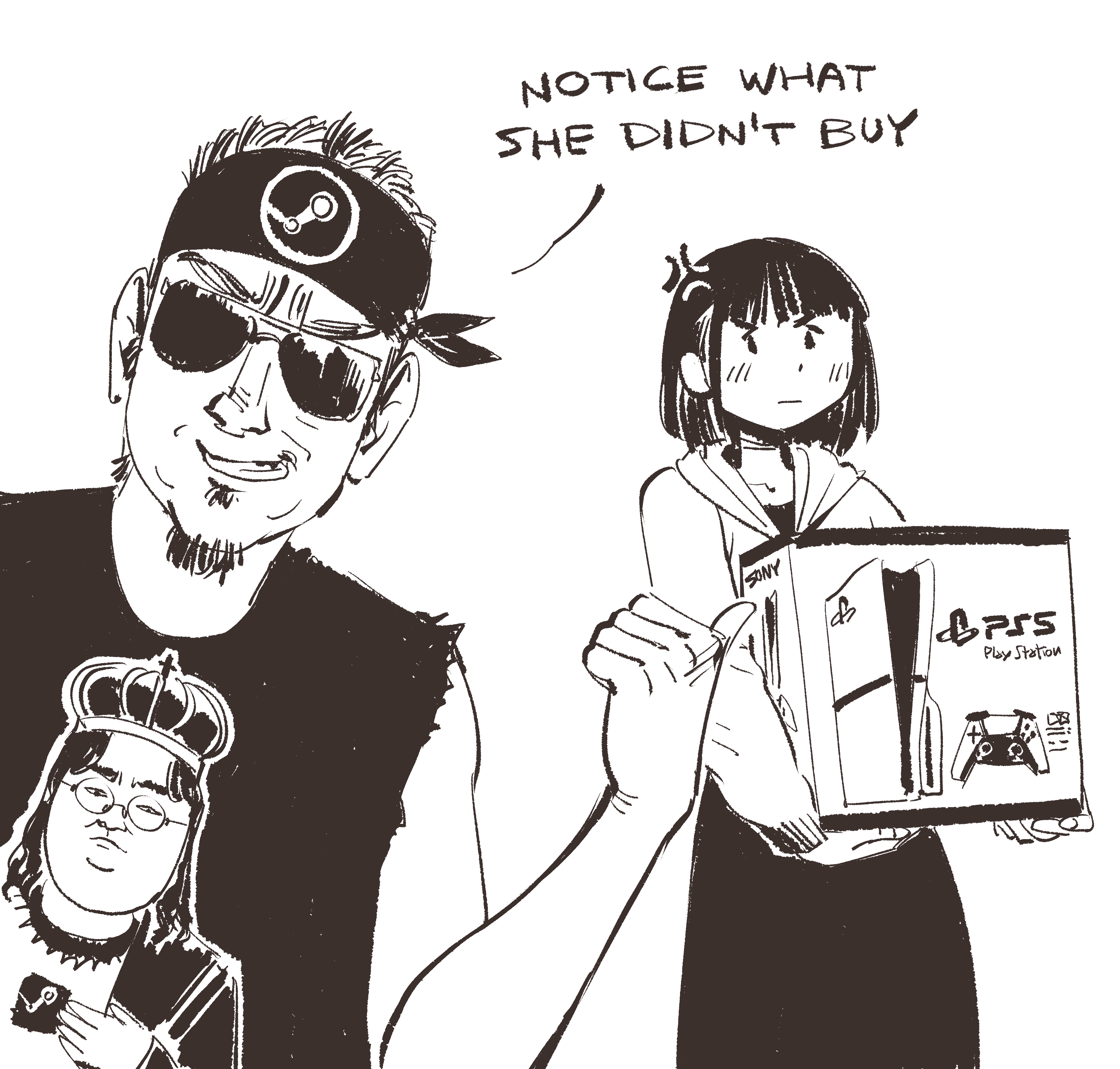 Notice what he didn't draw these two doing.