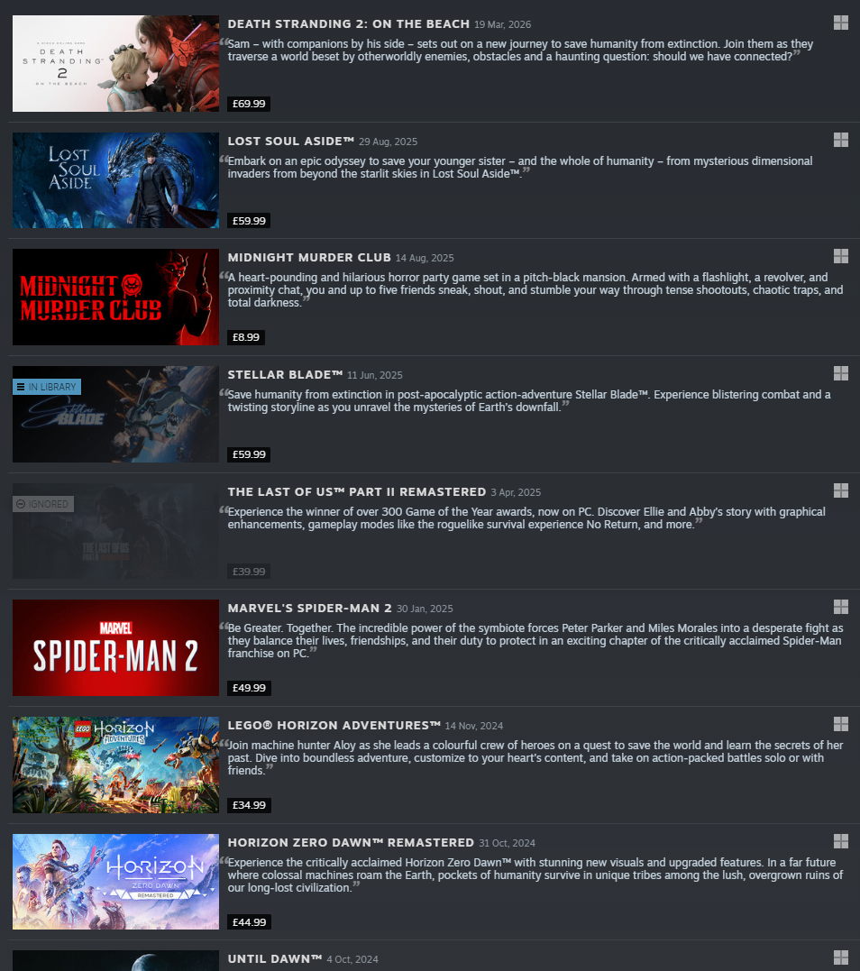 It has TLOU, TLOU2, TLOU remaster, TLOU remake, TLOU remaster remake GOTY (not really) edition...