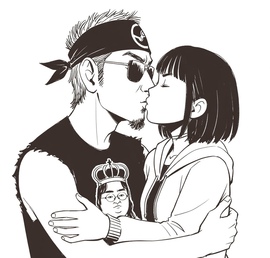 Now draw them kissing