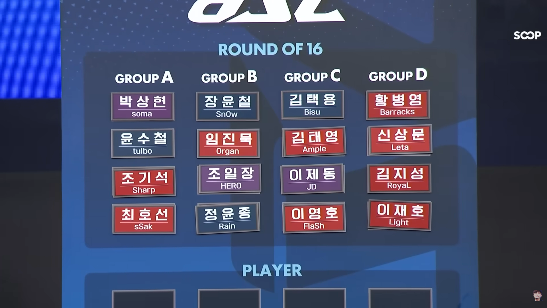 Group C has bisu, jaedong, and flash