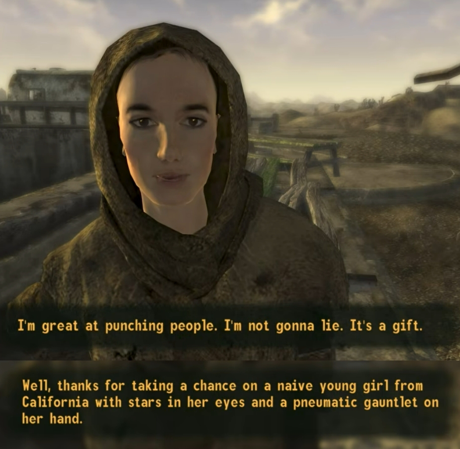FONV fans really think this millennial girbloss dialogue is deep and the best in gaming btw