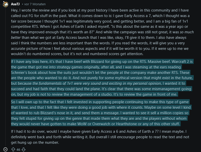 >>736570679They review games based on if they want to support a game or not.Here is an IGN reviewer explaining her reasoning behind giving Stormgate a good score