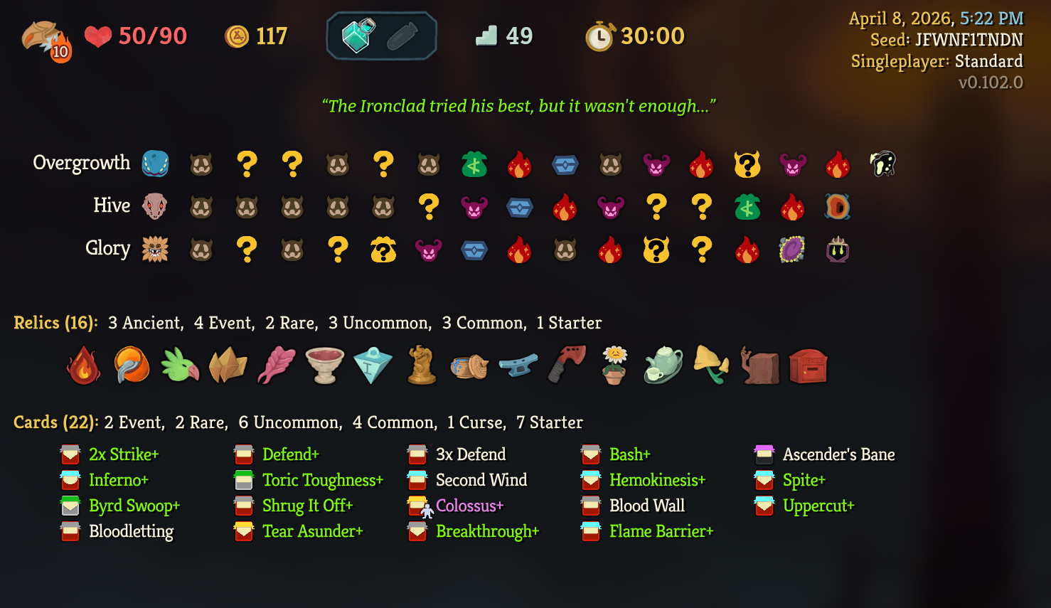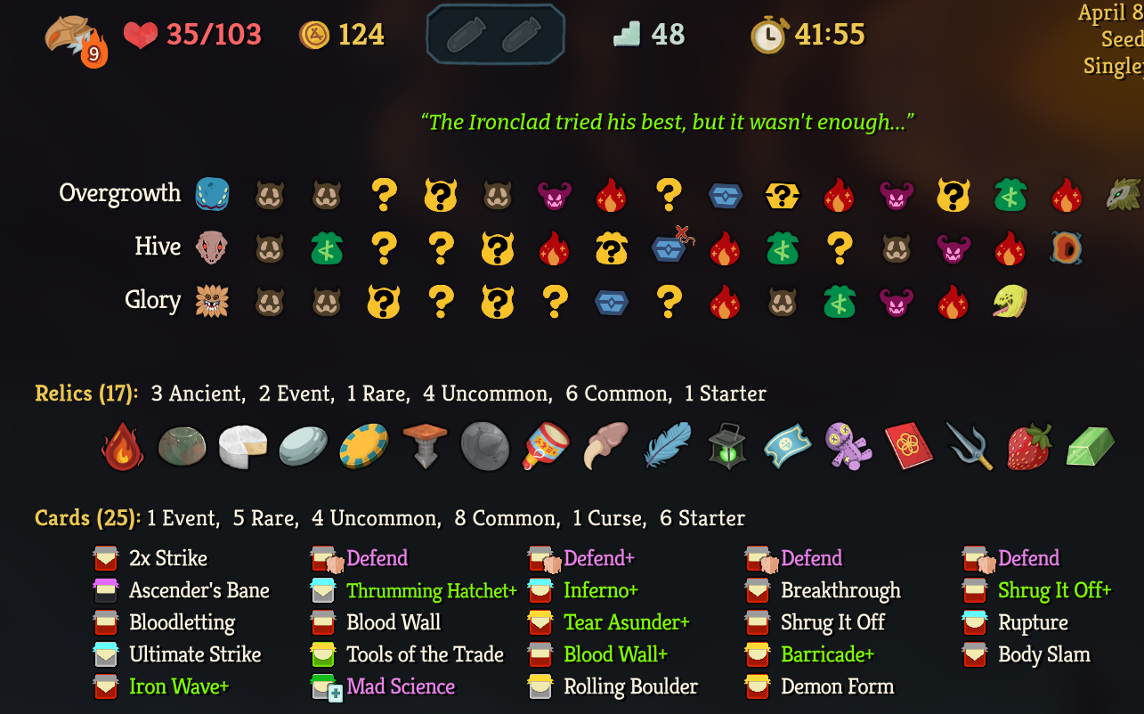 3 hours trying hard to get Hellraisers to auto clear battle at A9 Ironclad and lost everytime but I picked up the randomest shit cards possible and cleared it stacking shields with Barricade and Body Slam. This fucking game man