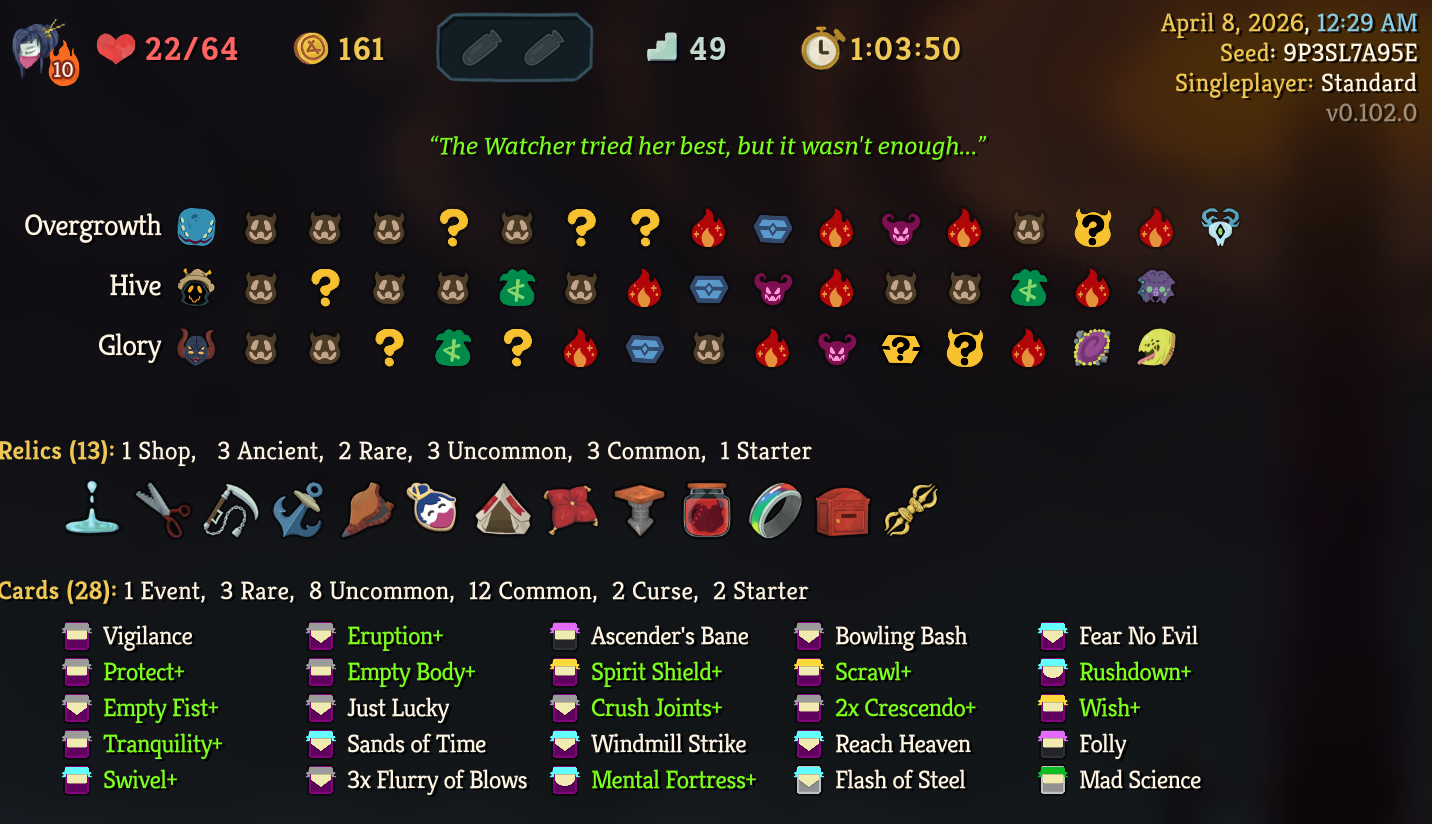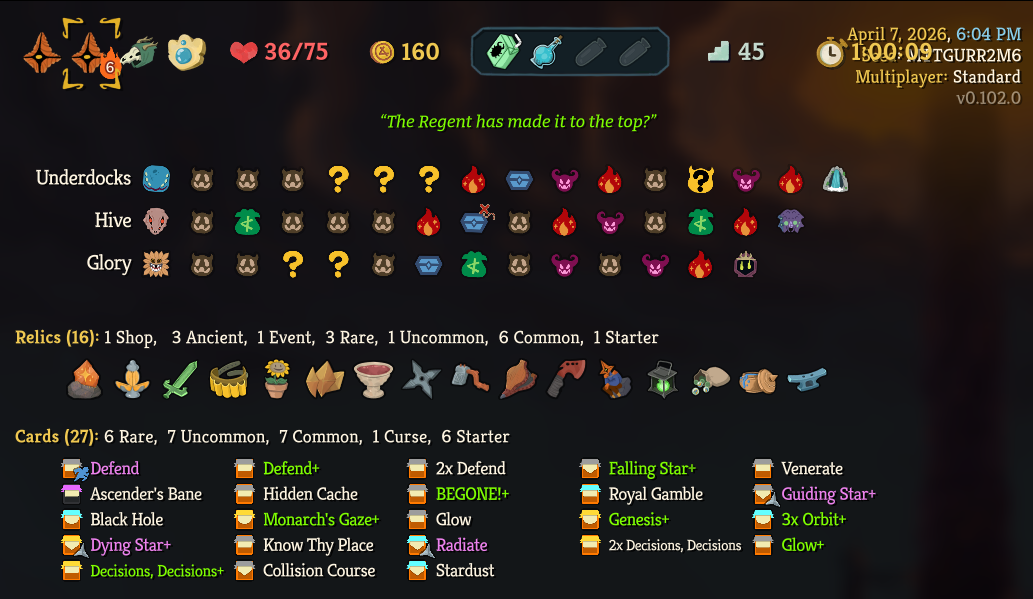 >Cruising through the ascensions, having fun>A9 Ironclad and Silent>Die ten times on each before winningThis is bullshit this game was not designed for these numbers this game sucks>First try A9 with Regentbruh