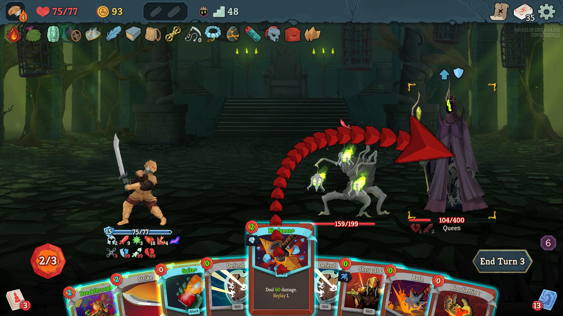 >>736608484Reaper and Limit Break removal are 50% of the reason why ironclad is the worst character in sts2. The other 50% is the gutting of exhaust builds in general with Dark Embrace being rare, corruption being essentially non-existent, and dead branch being gone. He has nothing to match the scaling other people have, with the sole exception of vuln stacking Bully.