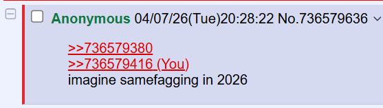 >>736579380>>736579416imagine samefagging in 2026