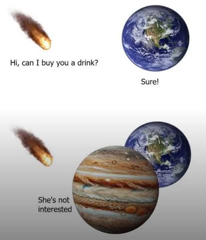 >>736587506>>736587664Jupes was the biggest menace in the early solar system when it was spiraling inward and rampaging through what is now the inner solar system. It was only when Saturn caught up and entered gravitational resonance with it, pulling both back to their current locations, that its path of destruction was halted. The true hero.