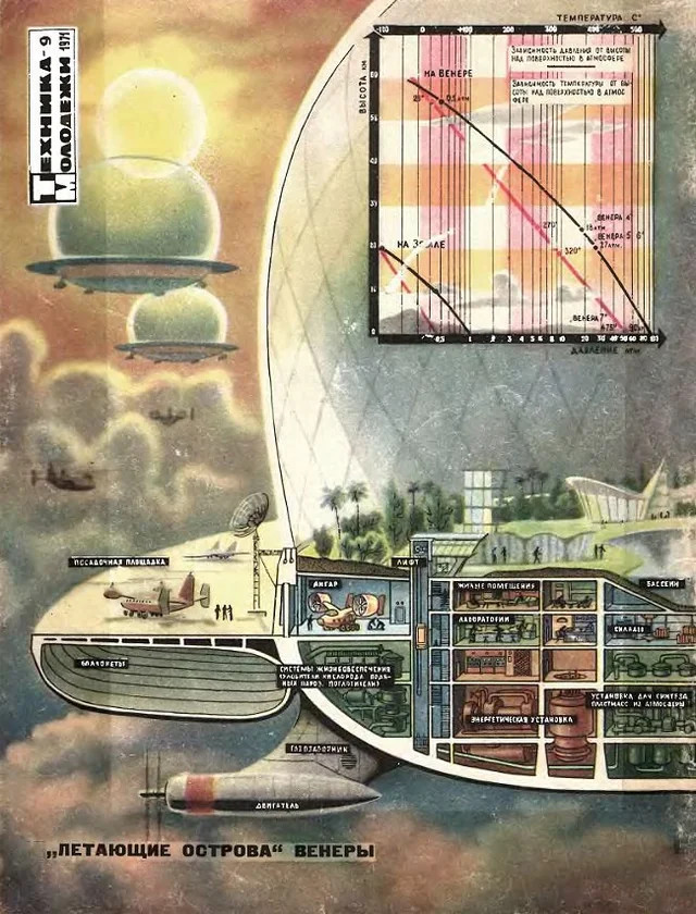 >>736603394Cloud cities are the wayRecent findings are that the clouds of venus are 60% water, not 100% sulphuric acid like previously thoughtSo it's not even that bad.
