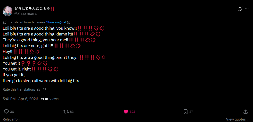 I lurked this thread for 12 hours and came back just to see the dude complaining about it not being loli and hating tits posting western futa porn and getting all his posts deleted. What a thread.