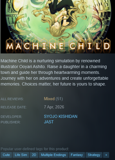 Reminder there's another princess maker clone coming out soon, but it's not lewd. It's not lewd but i think there's more gameplay.https://store.steampowered.com/app/3562120/Magical_Princess/