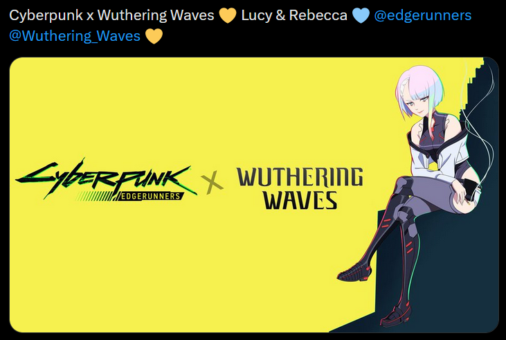 >>736604289https://x.com/WendeeLeeVO/status/2041596005700047232The user is the VO Director for EdgerunnersWe have also known that WuWa was getting an Edgerunners collab since the last anniversary stream so it should be dropping soon considering that was a year ago almost. https://youtu.be/bN4jmnCHd2I?t=5081