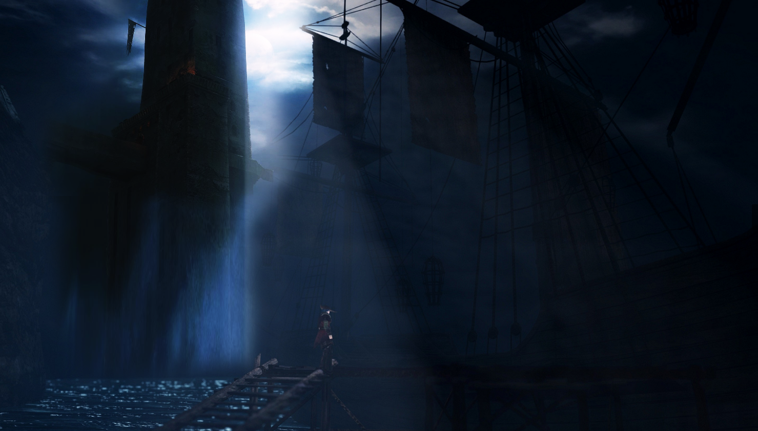 The whole path from Majula (hell, actually right from the starting point in Things Betwixt) to the Bastille is a total mess, transition-wise.>start on cliff>walk short corridor>come out of a sunken building on the open sea>go sub-sea level with an elevator and stairs>walk through a short cave>end up above sea level in wharf>summon ship>sails are in tatters>board ship>cutscene has the ship magically rotate 180° on the spot>reach bastille dock>the ship's sails are suddenly all fixed (of course they're ripped again when going back to the wharf)>this shit happens>>736608180>>736608269