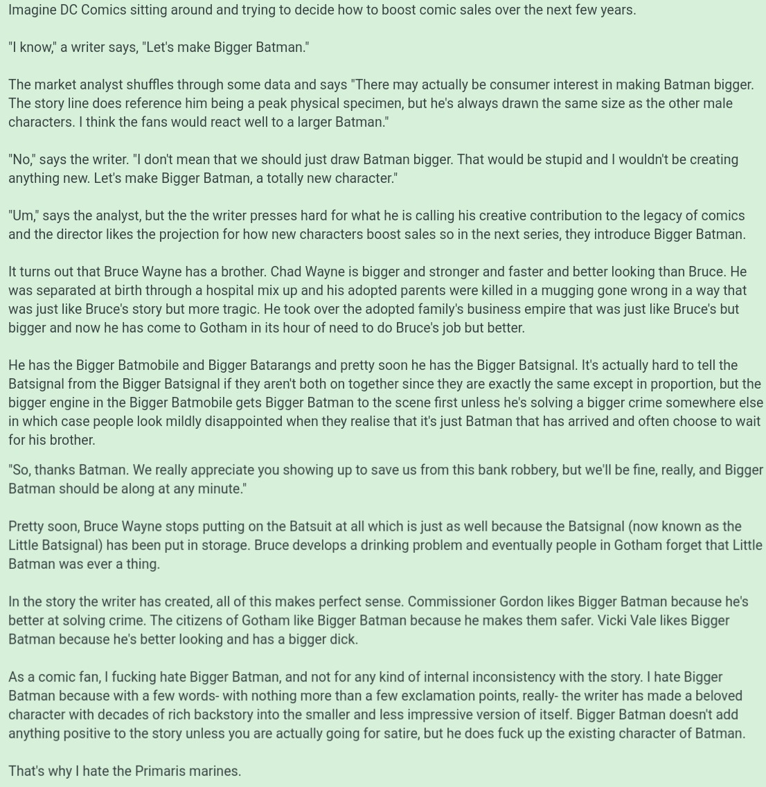 >>736610678Replace Bigger Batman with Miles Morales. Not so funny now, is it?