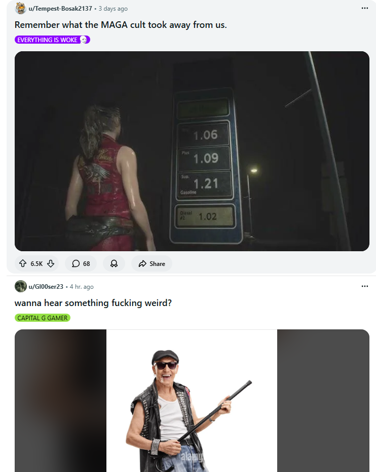 >>736626847It’s bizarro /v/.Instead of constantly screaming about trannies and indians they scream about republicans and elon, video games are just a vague pretense for that.