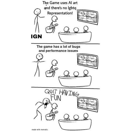 >>736625738>Noo you don't understand, this gook game is literally above criticism! It literally raised the bar for open world games