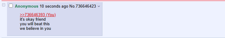 >>736646393it's okay friendyou will beat thiswe believe in you