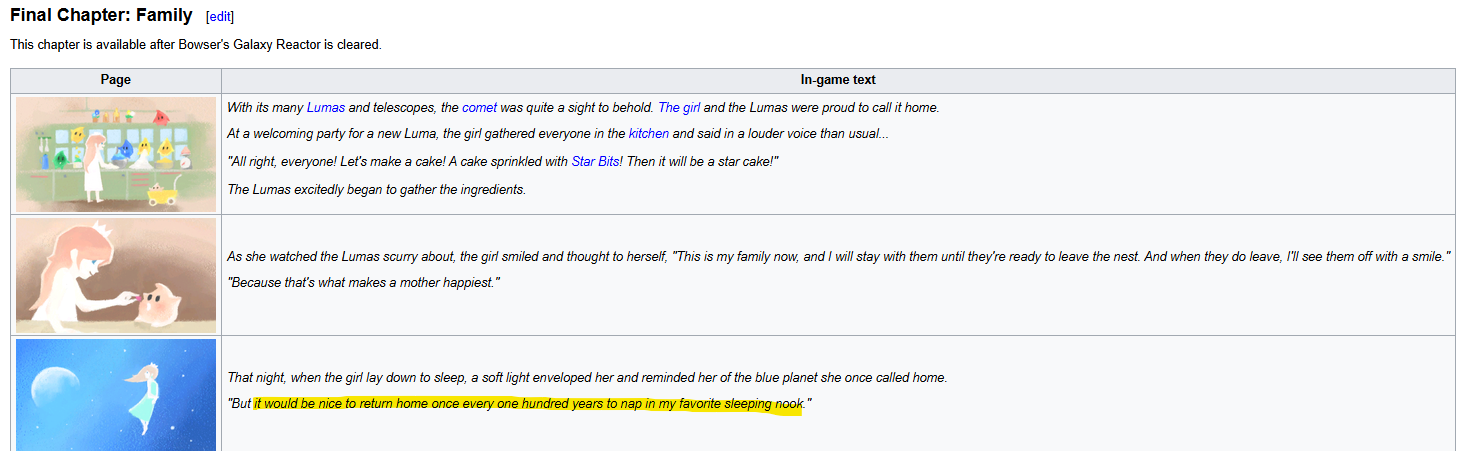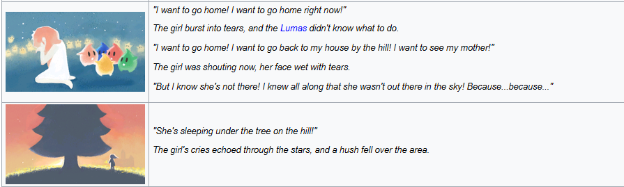 Rosalina had a sad backstory about being alone. Completely removed now that she found her sister.