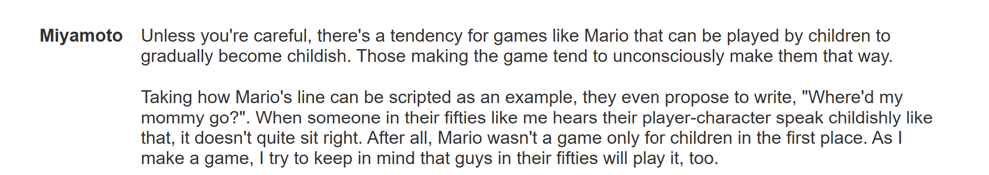 God, Miyamoto is based. No wonder his games are so good. Really could have used his attitude on TotK...