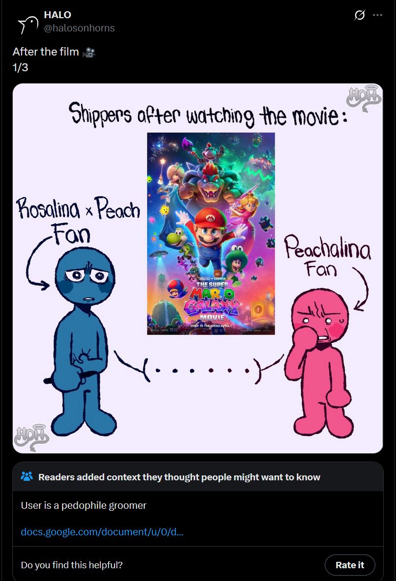 I saw it yesterday and the moment they revealed this I thought "Oh shit, they're gonna have to tag all the Rosalina and Peach R34 with incest."