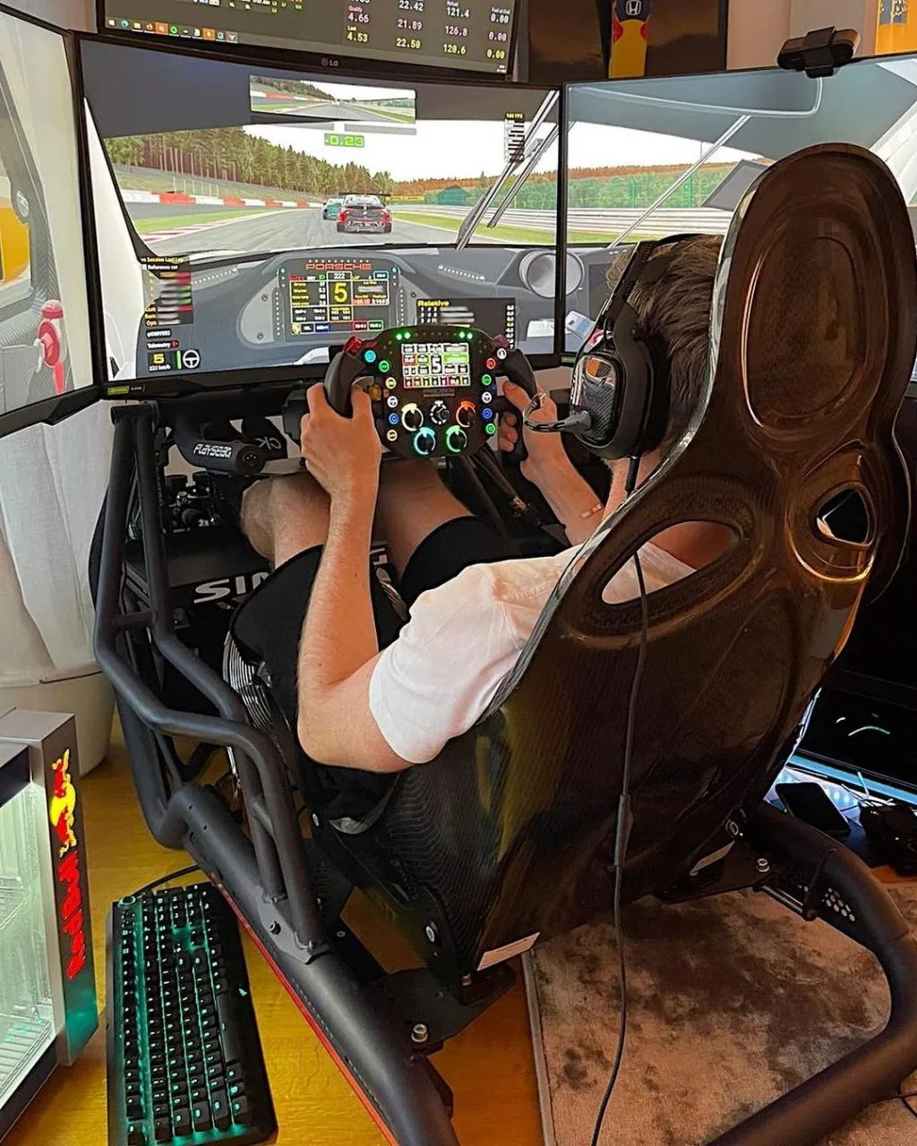 >>736643830>buying a bunch of expensive bullshitall you need is a wheel retard you already have the desk and chair. fucking moron.the fags buying "simrigs" are morons being grifted by marketing conspicuously consooming overpriced nonsense to run 6 seconds off pace in gt3s at spaa thrustmaster t300 works in every racing game ever made and even windows 98