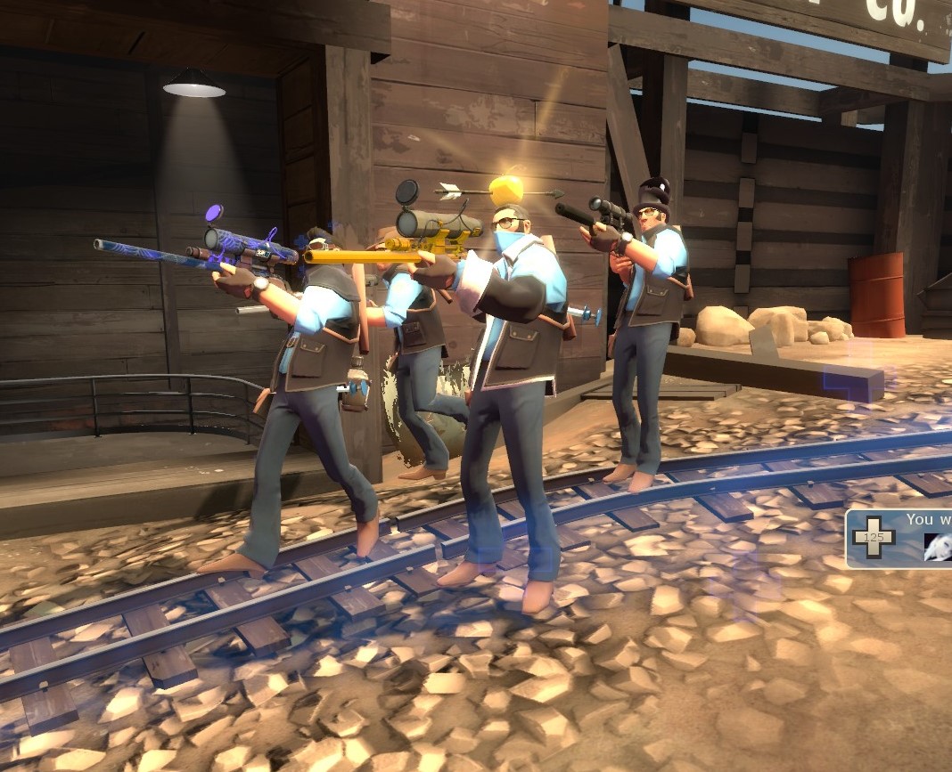 >mission begins in 30 seconds>sniper runs up to BLU gates>look at sniper>sniper looks at me>looks up, crouches and starts vulgarly humping the air