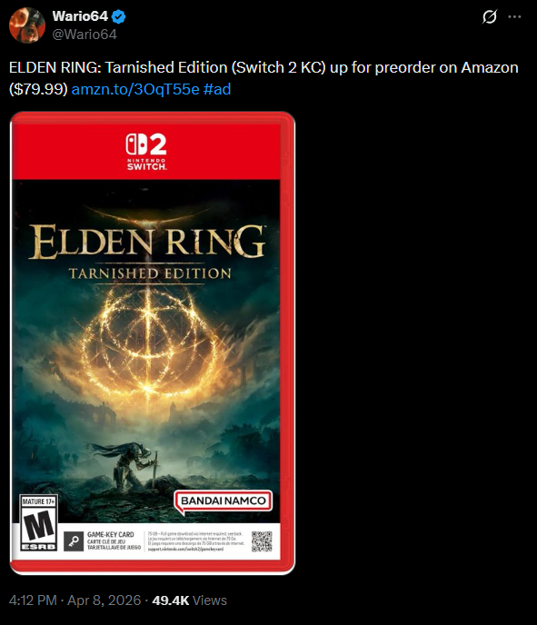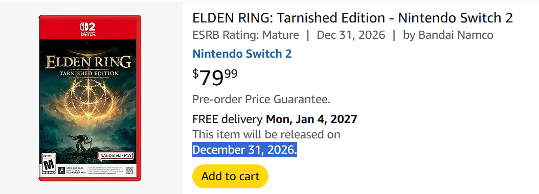 >>736636061>elden ring is $80 and a gkc>007 first light got delayed on the switch 2 because it's switch 2 weaknot a great day for tendies, may tomorrow be better for them. i actually really like my switch 2 but the third party prospects are already becoming grim, wild.