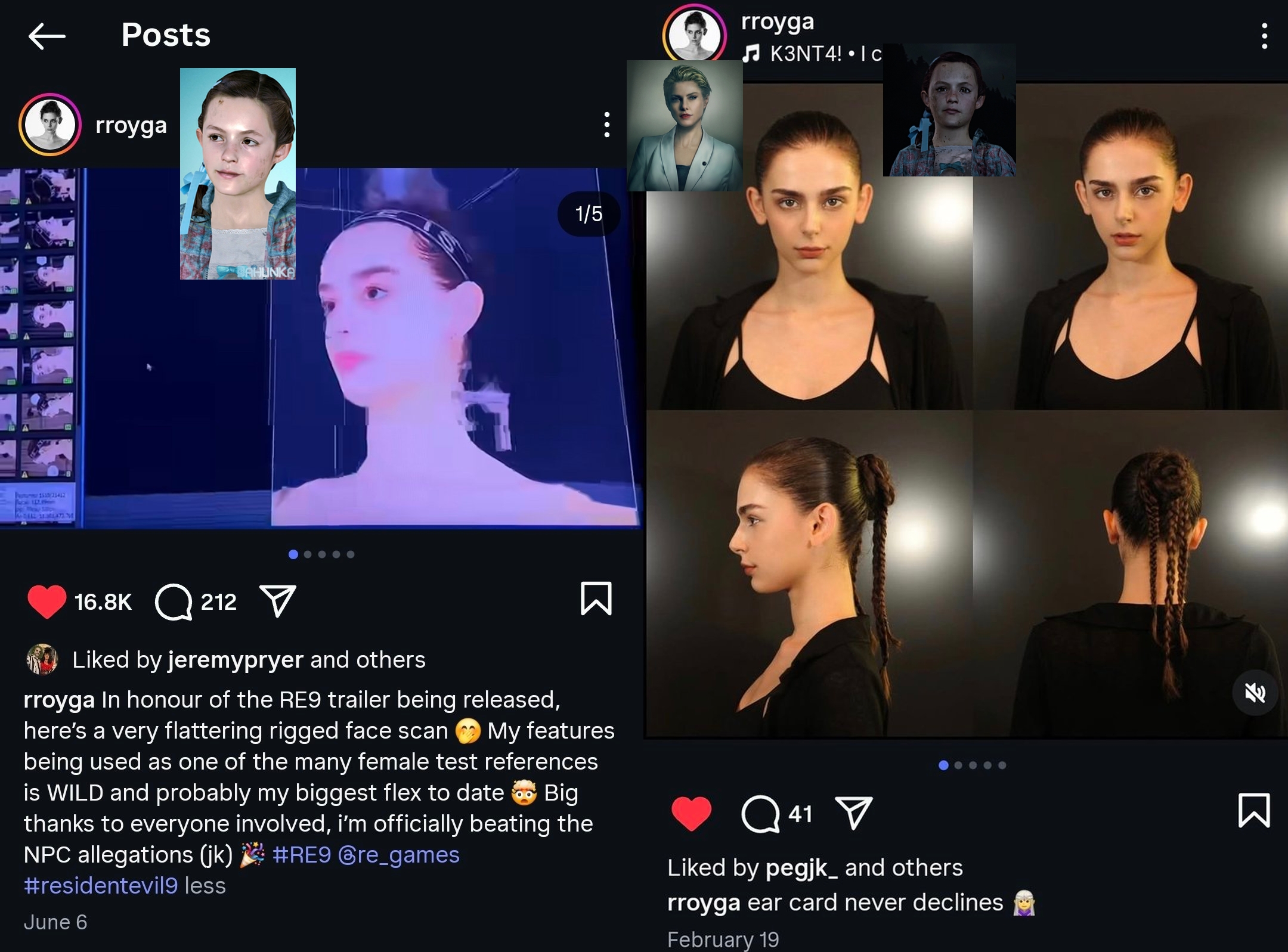 >>736642368Possible Steve and new Claire face scan models? in their posts they are saying they were scanned for RE9 but maybe they have actually been scanned for CVR and dont know it